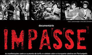 Em maio e junho de 2010, milhares de pessoas foram às ruas de Florianópolis para protestar contra o aumento da tarifa do transporte coletivo. Além de cenas que não foram exibidas em nenhuma tevê, incluindo flagrantes de violência durante os atos públicos, Impasse revela o que pensam usuários, trabalhadores, especialistas e empresários do transporte. Expõe as contradições e as diferenças de posição dos estudantes, dos representantes do governo municipal e do governo estadual. Discute questões que se entrelaçam e se completam: Por que a cidade se tornou um símbolo na luta pelo transporte público? O que aconteceu durante a ação da polícia militar na Universidade do Estado de Santa Catarina? Por que a mobilidade urbana é um dos grandes temas do século XXI? Existe, afinal de contas, saída para este impasse?